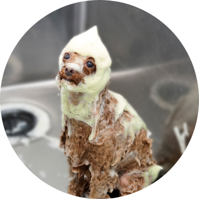 当店で使用しているシャンプーはZOICのそれぞれの犬種、毛質に合わせたシャンプー、100%オーガニックNICOシャンプー、ノンバサンシャンプー、その他お医者様に薬用シャンプーを処方されているワンコは持ち込みもOKです。